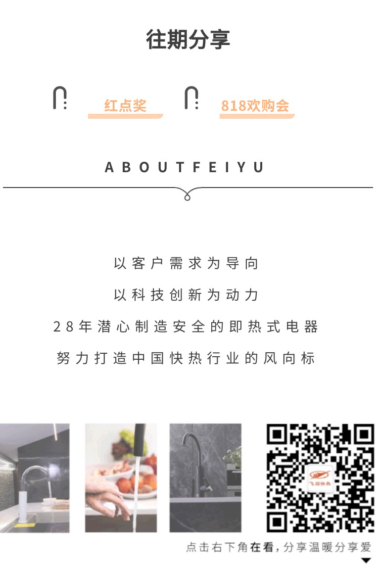 現(xiàn)如今,飛羽快熱的電熱水龍頭經(jīng)過(guò)一層層的升級(jí)迭代,采用兼具纖細(xì)身材和高效性能的“霆芯?高性能安全內(nèi)膽”,加熱不再需要再像20年前那樣等待十幾秒,而是“龍頭一開,熱水即來(lái)”。