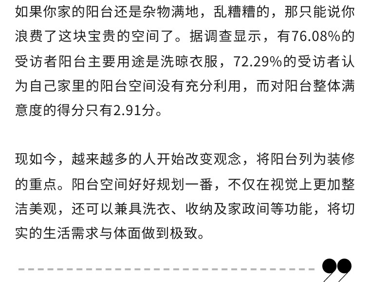 隨著居住者對(duì)生活品質(zhì)的追求,陽(yáng)臺(tái)不再只是單一的晾曬區(qū)或“雜物間”,開始兼?zhèn)涓鄬?shí)用功能。