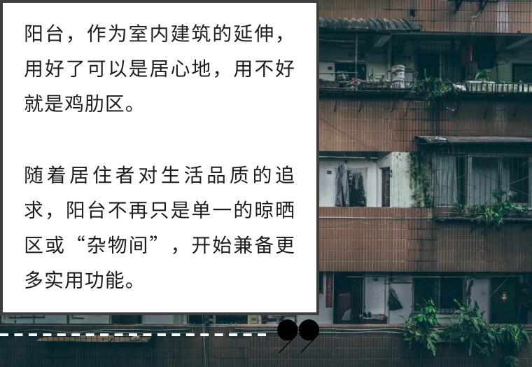陽(yáng)臺(tái),作為室內(nèi)建筑的延伸,用好了可以是居心地,用不好就是雞肋區(qū)。
