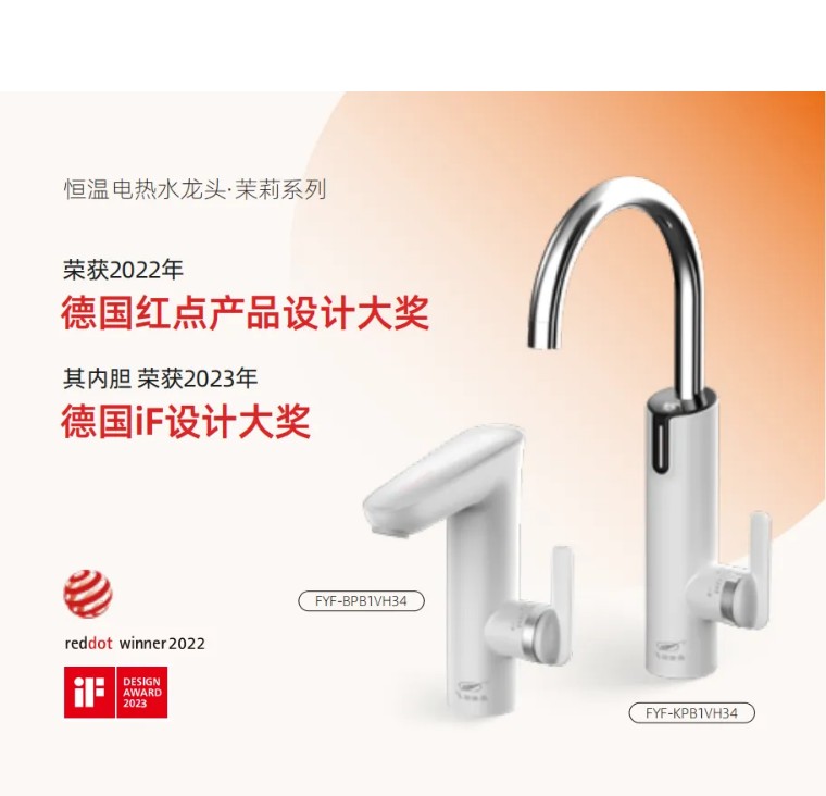 其中,恒溫式電熱水龍頭·茉莉和其內(nèi)部搭載的霆芯?高性能安全恒溫內(nèi)膽TGF-A7分別獲得了2022年度德國紅點(diǎn)獎(jiǎng)和2023年度德國iF獎(jiǎng)等國際權(quán)威設(shè)計(jì)大獎(jiǎng)。